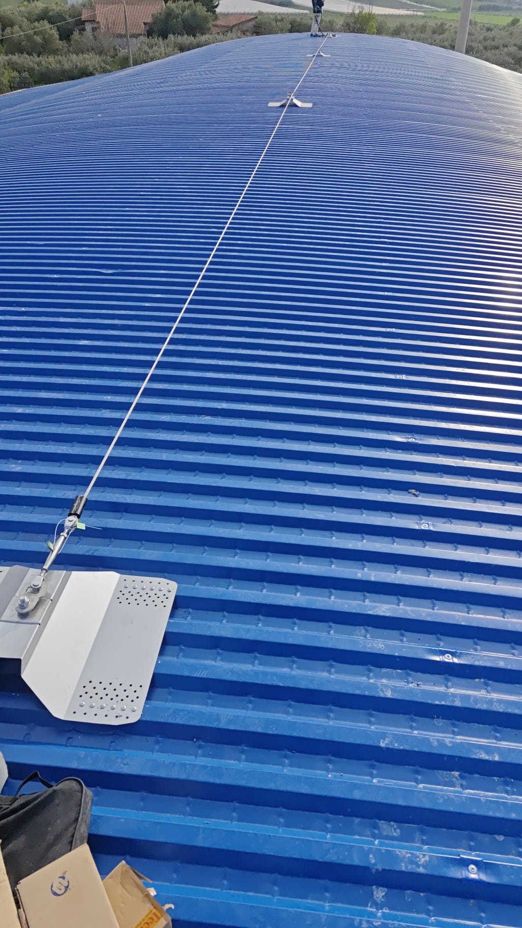 [Immagine: Installazione di una linea vita Quota Sicura su un tetto residenziale in Sardegna]