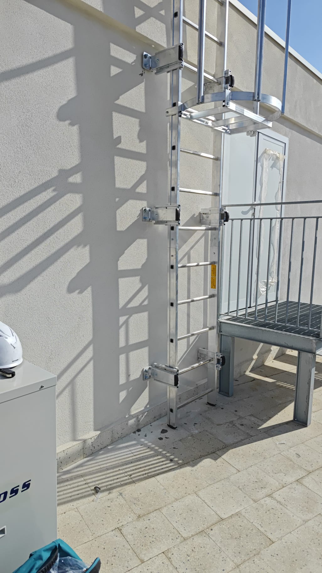 [Immagine: Scala a gabbia installata su un edificio commerciale a Cagliari]